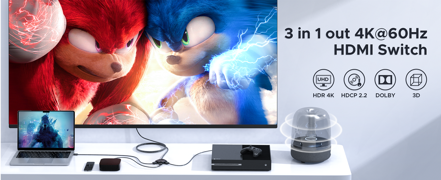 4K 60HZ HDMI Switch 3 in 1 out 3.3ft Space Gray