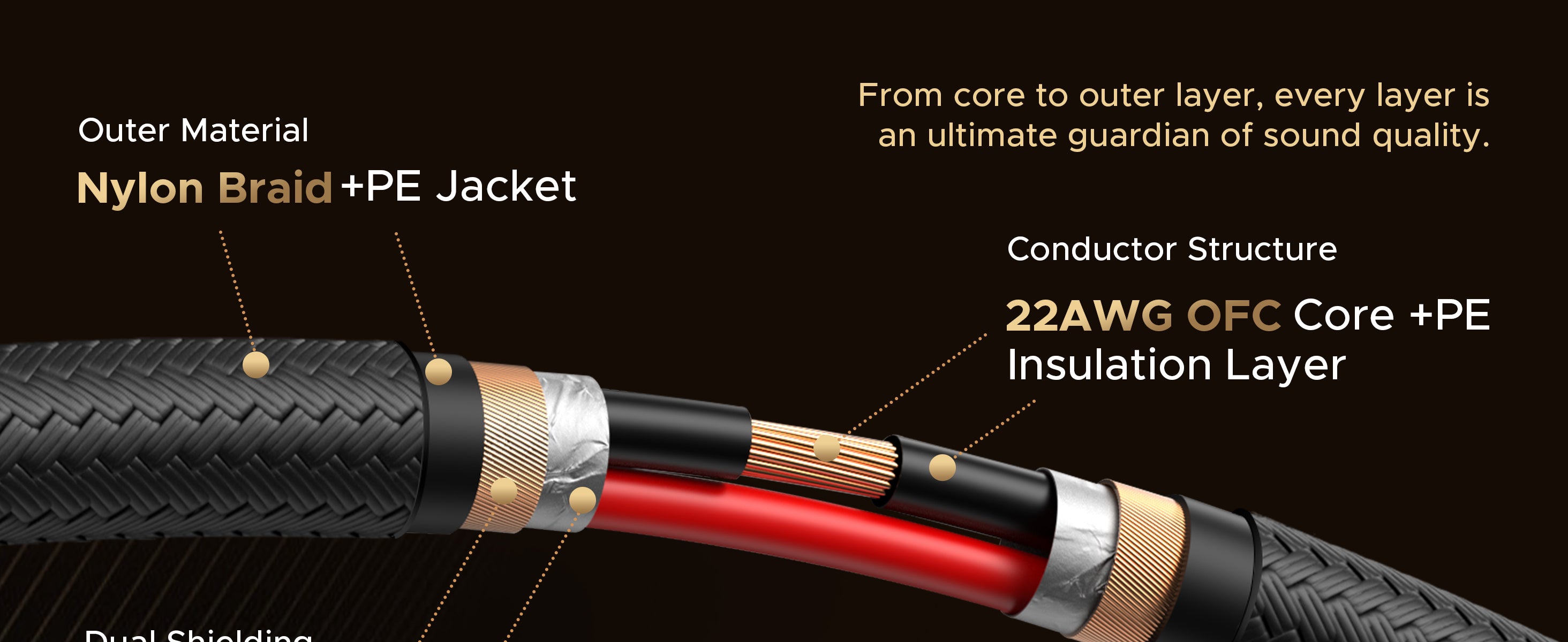 - Oxygen-Free Copper Core: 99.99% OFC reduces signal loss by 30%, 20Hz–20kHz frequency response (<0.01% THD). Accurately reproduces vocals, instrument dynamics, and tight bass details.