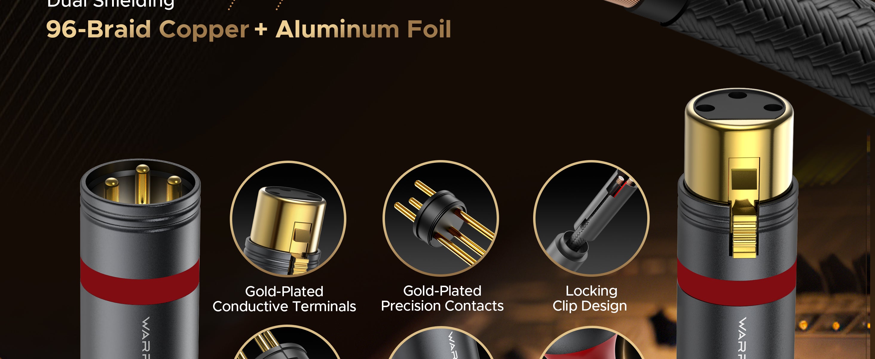 - Professional XLR Cables: 22AWG oxygen-free copper core + 6-layer precision design (aluminum shell, locking clips, strain-relieved ends). Built for durability in studios, live performances, and pro audio systems.