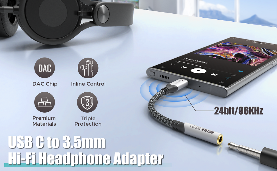- HiFi USB C to aux adapter, Plug & play, no driver needed