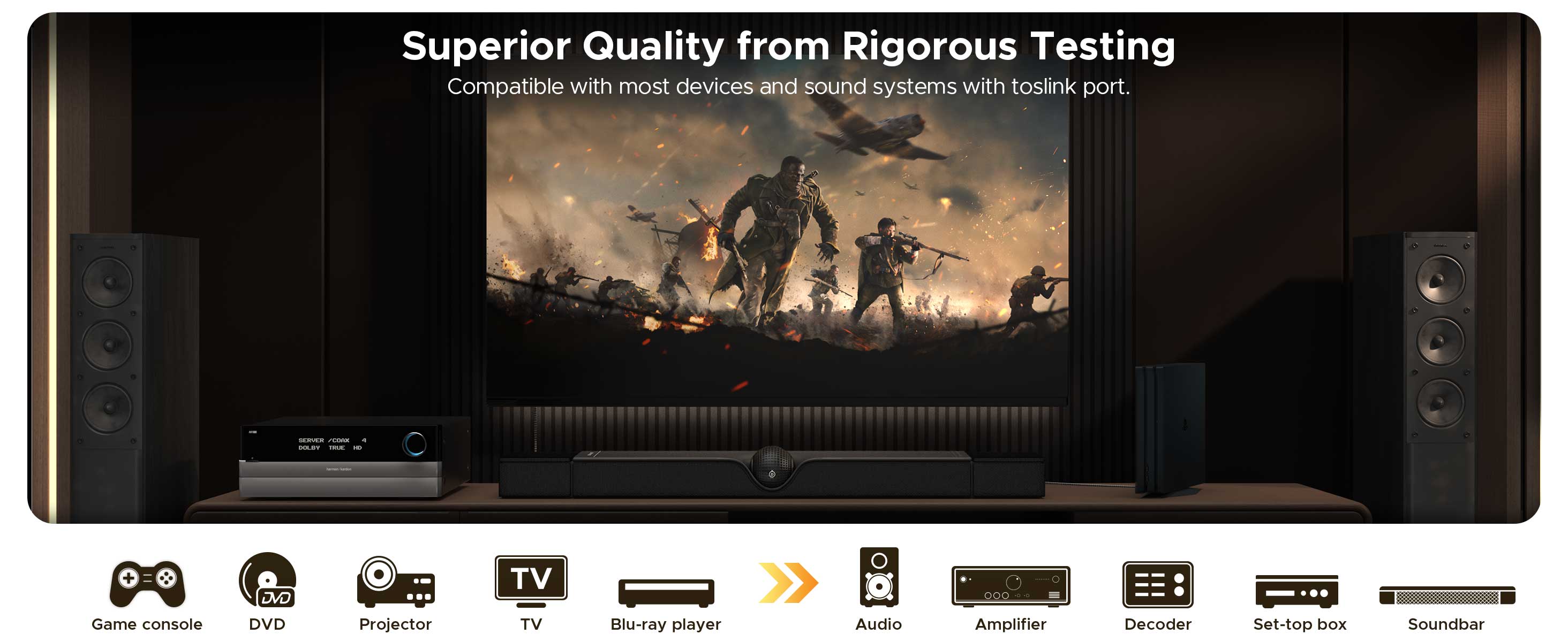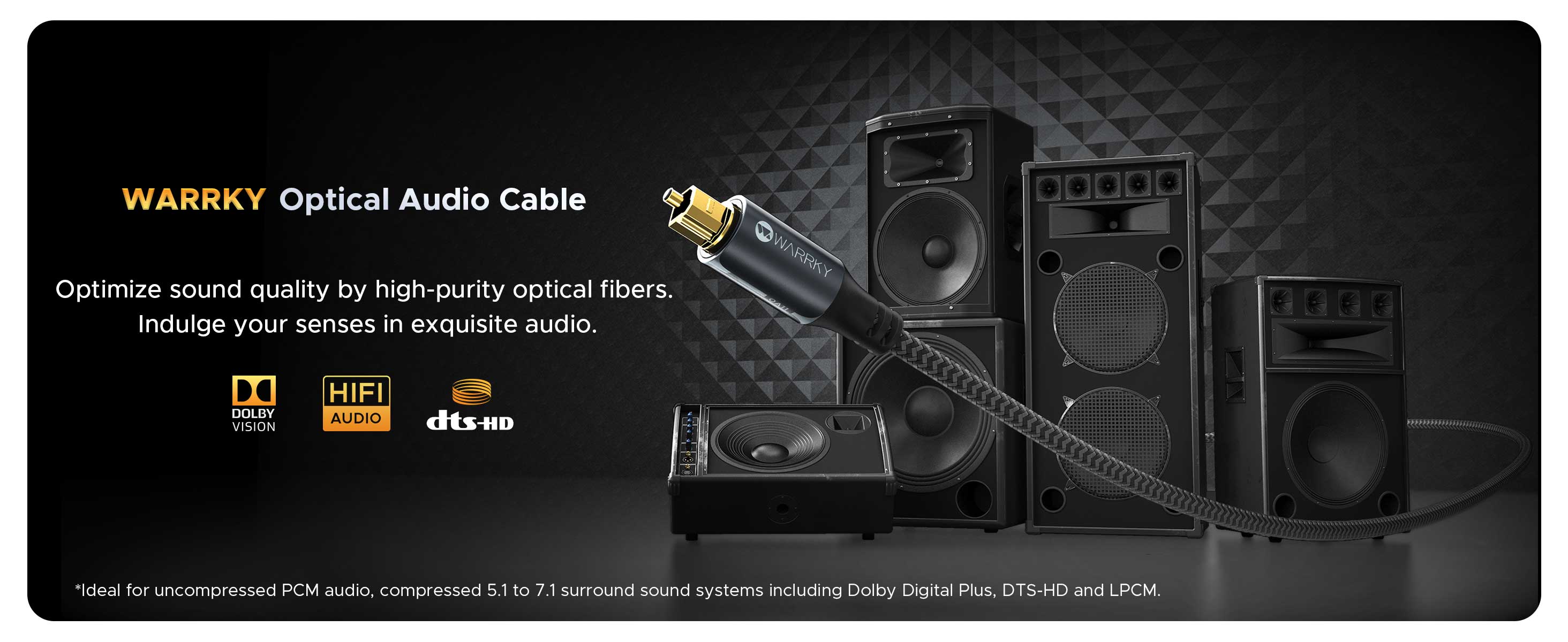 Enjoy breathtaking cinematic sound as WARRKY optical audio cable becomes the vital link in your home theater setup.